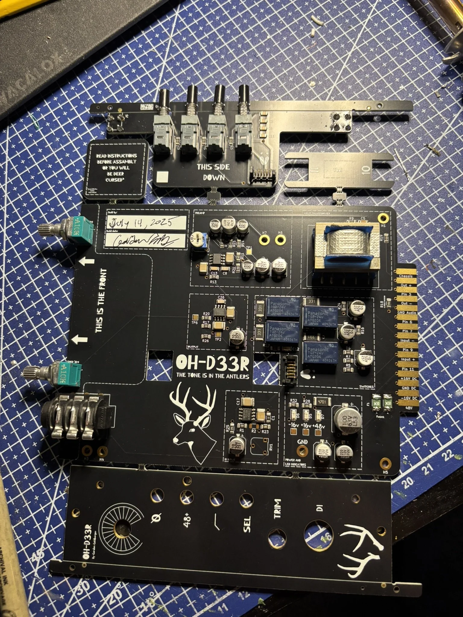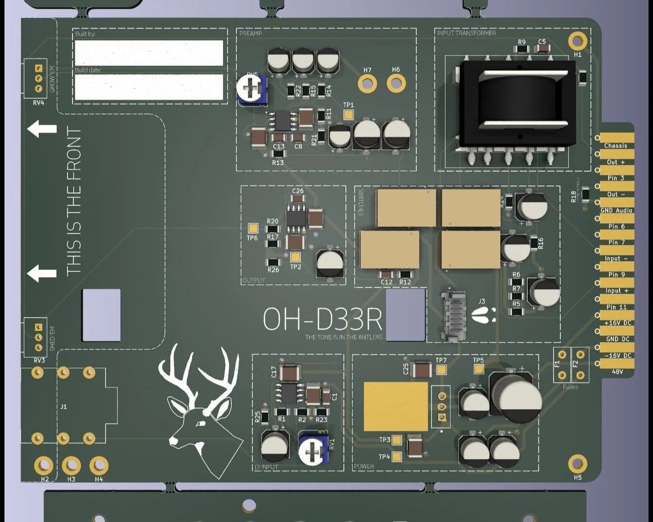 The OH-D33R is a DIY, op amp–based microphone preamp designed for easy assembly and serious sonic character. Inspired by the legendary ISA-110 mic preamp, it captures the spirit of classic British console sound while embracing modern accessibility. Whether you're a home recordist, a boutique builder, or a curious tinkerer, the OH-D33R delivers clean gain, flexible tone, and a rewarding build experience—no soldering required. Thoughtfully laid out and grounded in pro audio tradition, it’s a clever deer in a forest of clones.